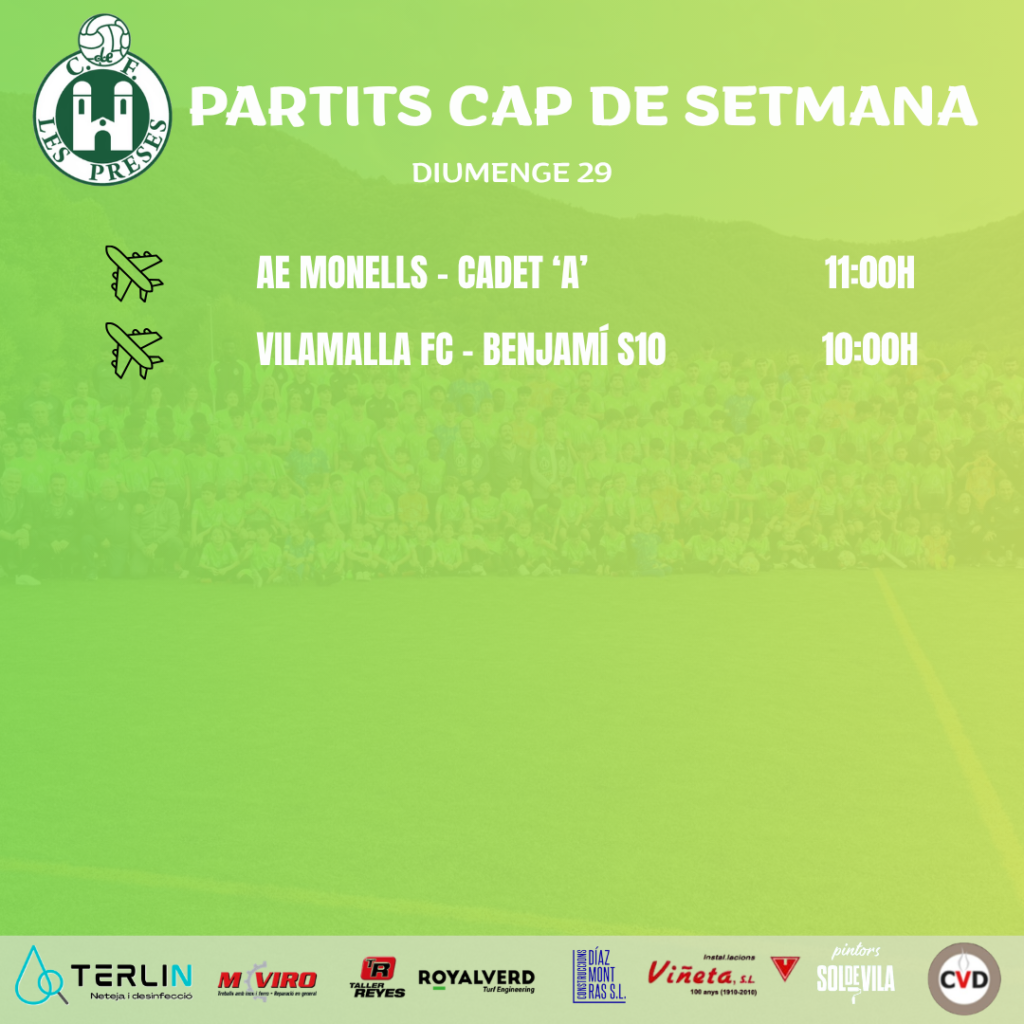 Diumenge dos partits i els dos com a vistats. A les deu, el Benjamí S10 que juga al camp del Vilamalla i a les onze, el Cadet ‘A’ que ho farà al camp del Monells.